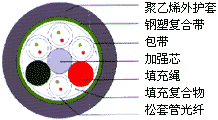 产品型号: GYSTS也叫(GYTS) 光纤松套管 金属中芯加强件 缆芯填充油膏 轧纹钢带粘结PE护套 | |||